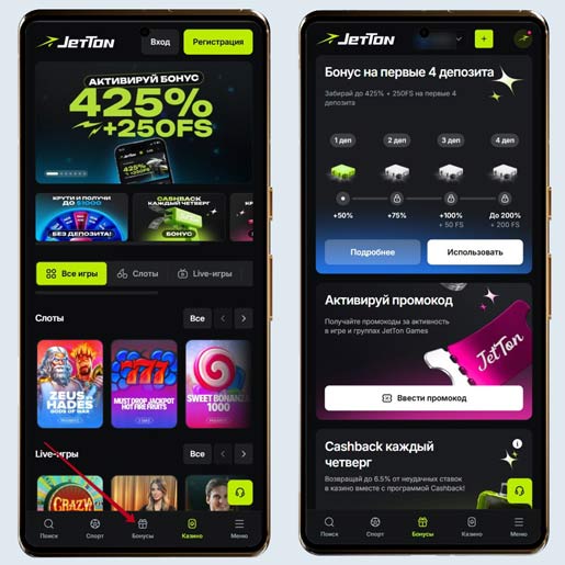 Мобильная версия и приложение казино Джеттон