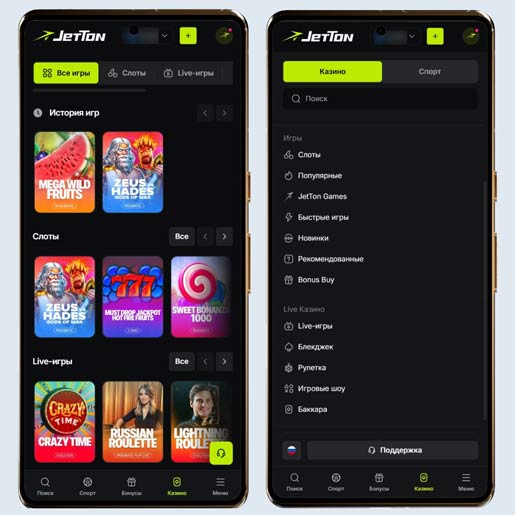 Мобильная версия казино JetTon Games